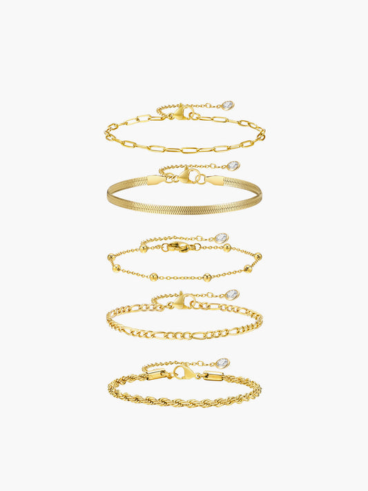 Gina | Luxe Armbanden Set - Set van 5, Verstelbaar, Titanium Staal