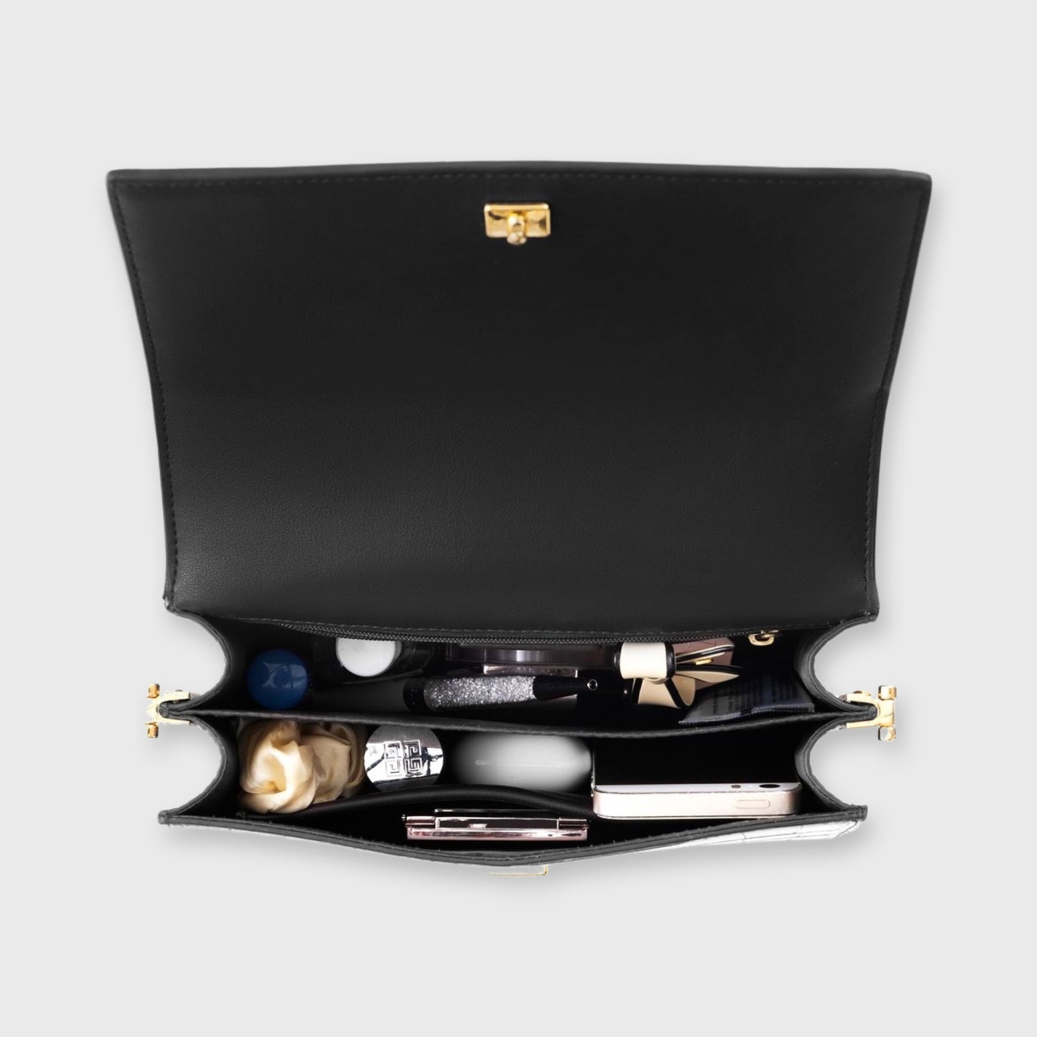 Het gestructureerde design en de goudkleurige hardware zorgen voor een chique uitstraling, terwijl het handzame formaat ideaal is voor dagelijks gebruik of een avondje uit.