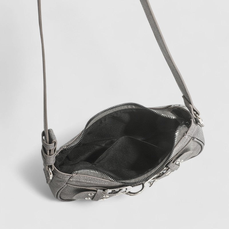 Het uiterlijk geeft de tas een edgy uitstraling, perfect voor vrouwen die durven op te vallen met hun stijl. De stevige ritssluiting en het hoofdvak zorgen ervoor dat je spullen veilig zijn opgeborgen. Dankzij het lichte gewicht en verstelbare schouderriempje draag je hem comfortabel de hele dag door.