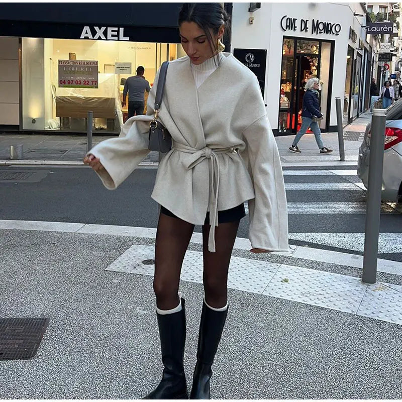Deze elegante jas met strikceintuur biedt een flatterende pasvorm en een moeiteloos chique uitstraling. Of je nu door de stad wandelt of een avondje uit plant, deze jas is de ultieme combinatie van stijl, comfort en warmte.