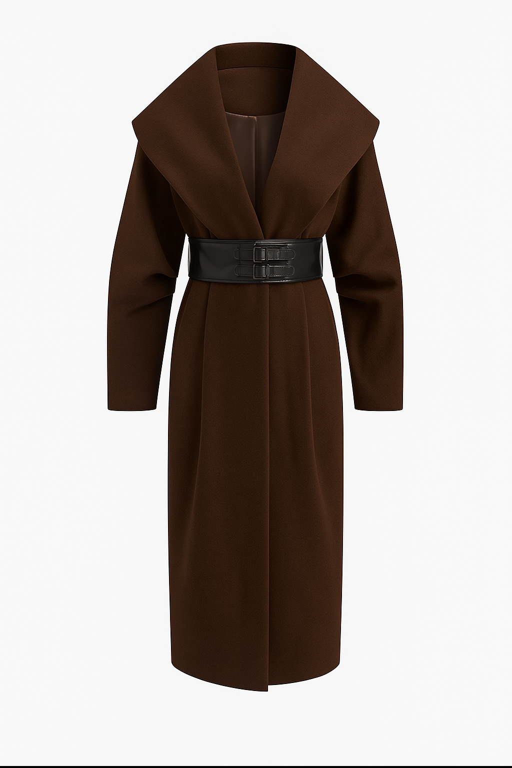 Odette | Lange Tweed Jas Winter - Oversized Kraag en Brede Riem