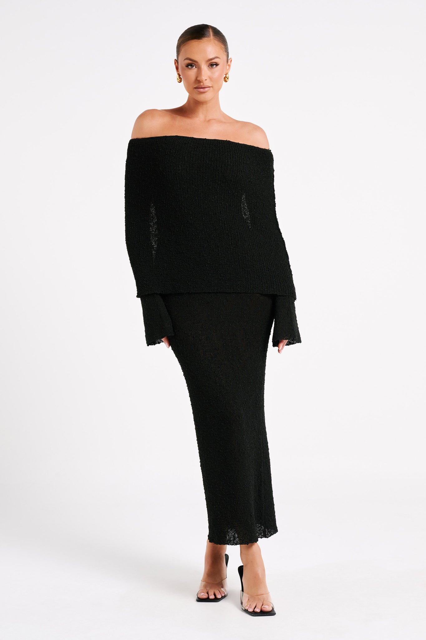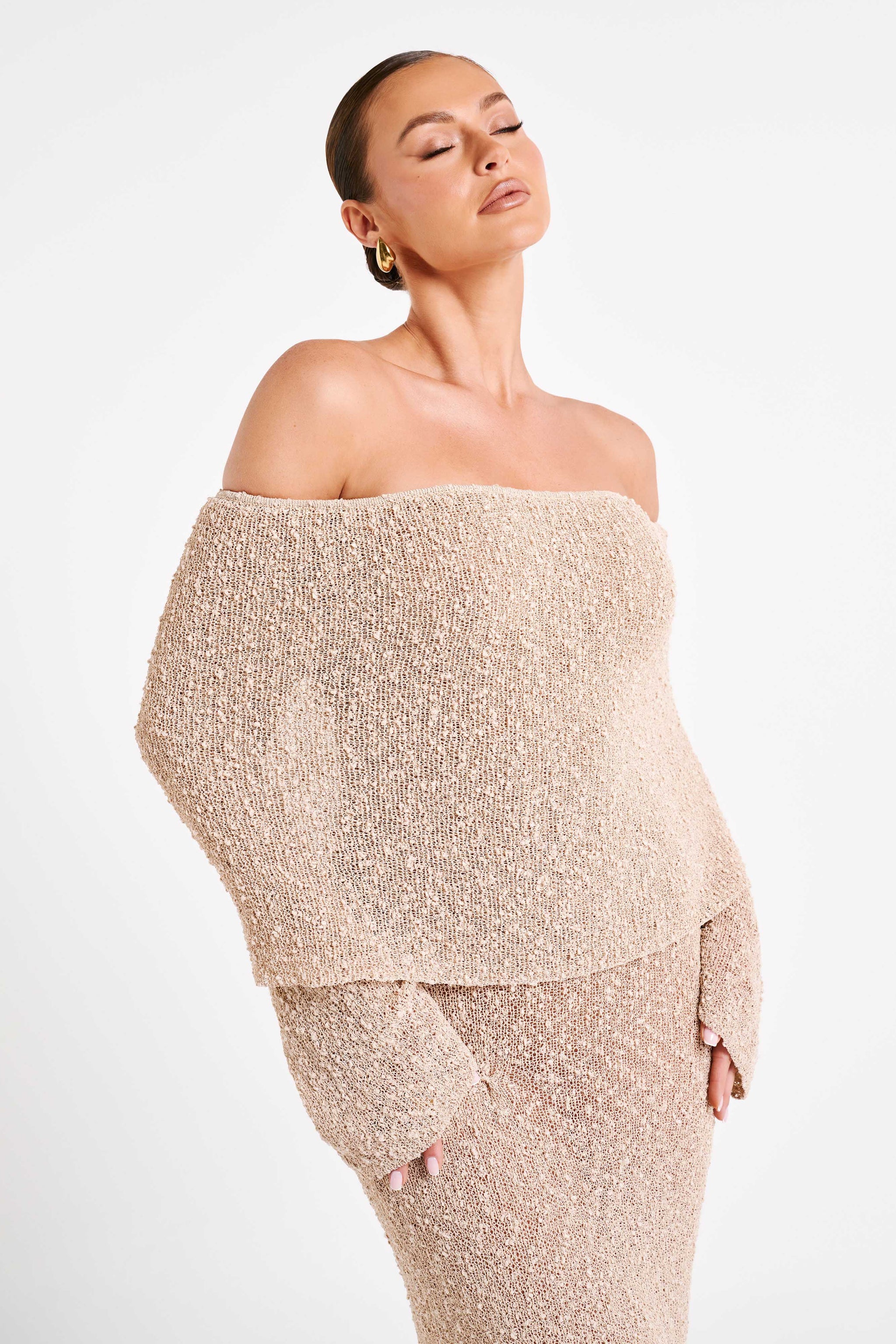 Angel | Bouclé Off-Shoulder Maxi Jurk