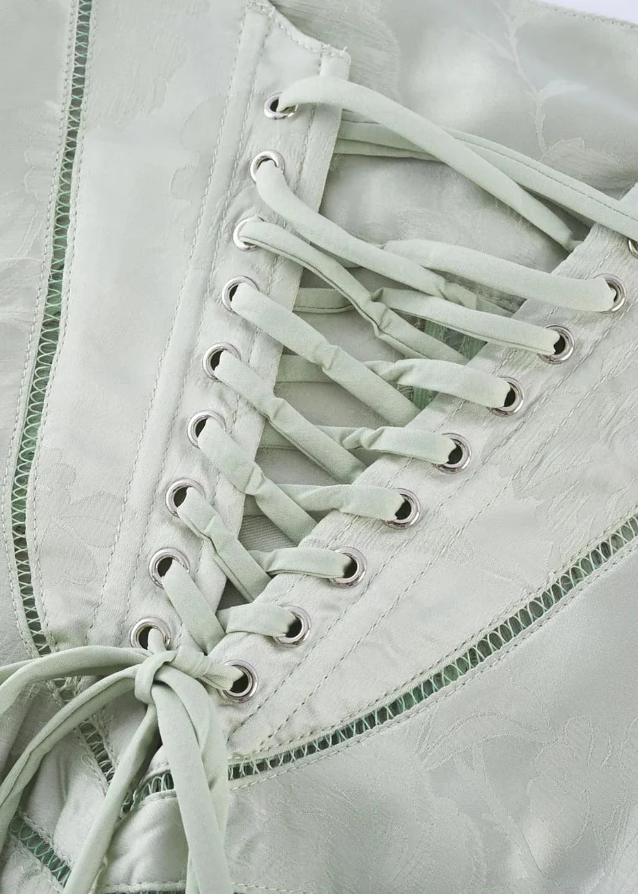 Laat je stijl spreken met deze betoverende Gilda pistache groene jurk – elegantie begint hier.