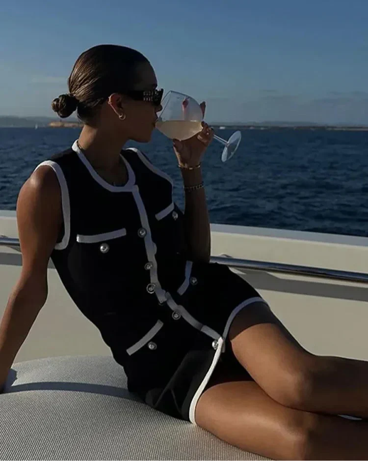 Elegante Mouwloze Jurk met Contrasterende Knopen