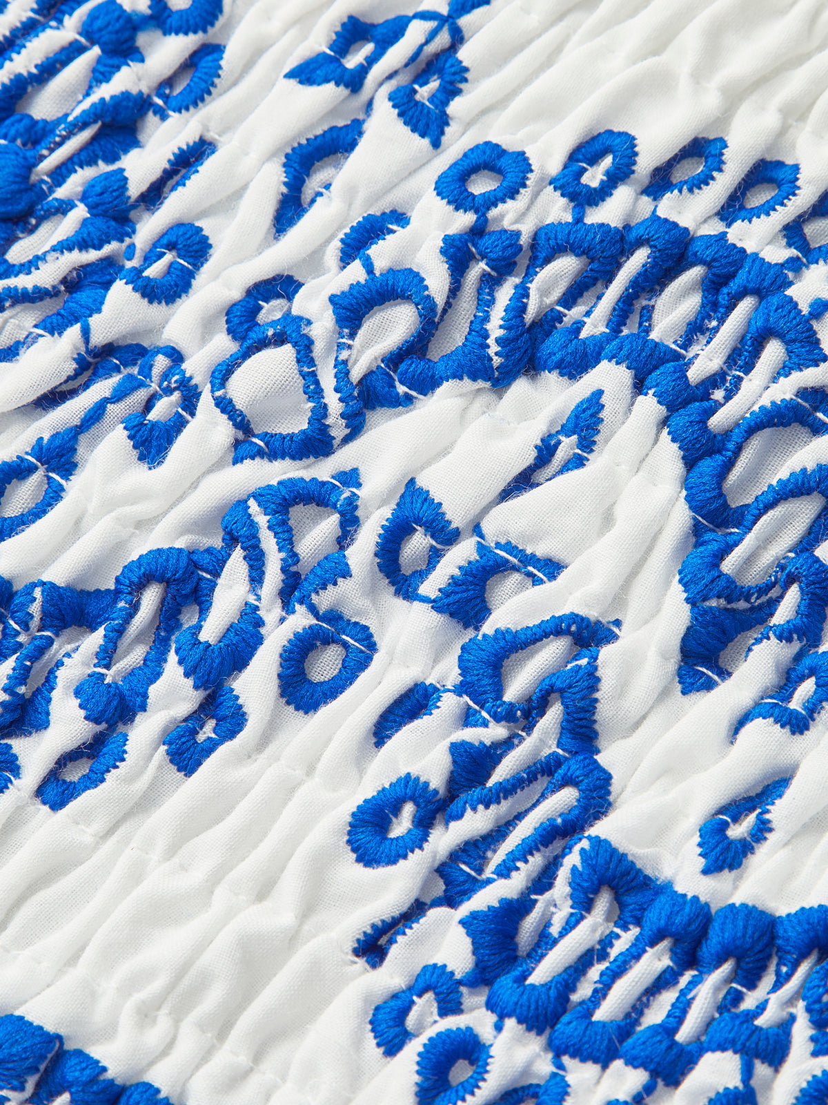 De strapless snit met hartvormige halslijn accentueert je figuur op elegante wijze. De geborduurde details en speelse, gelaagde zoom met geschulpte randen geven de jurk een vrouwelijke en unieke uitstraling. De korte lengte en slim fit zorgen voor een moderne look, ideaal voor zowel casual als feestelijke gelegenheden.