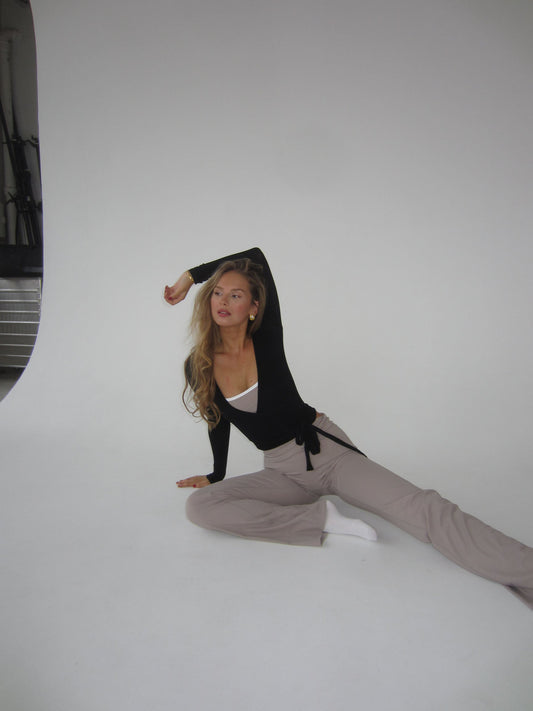 Leila | Zwarte Wikkel Top met Lange Mouw