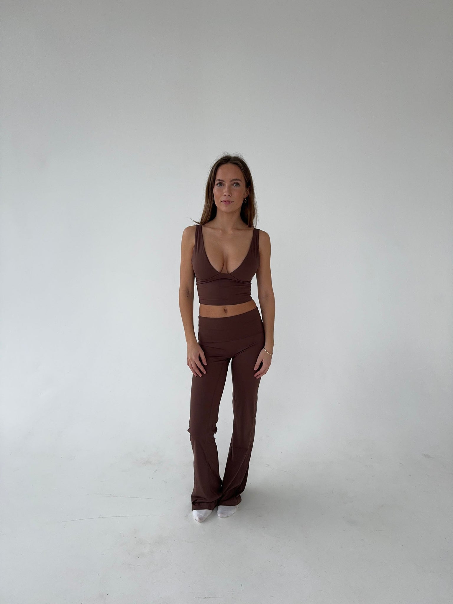 Dounia | Bruine High Waiste Flared Legging – Stretch & Comfort