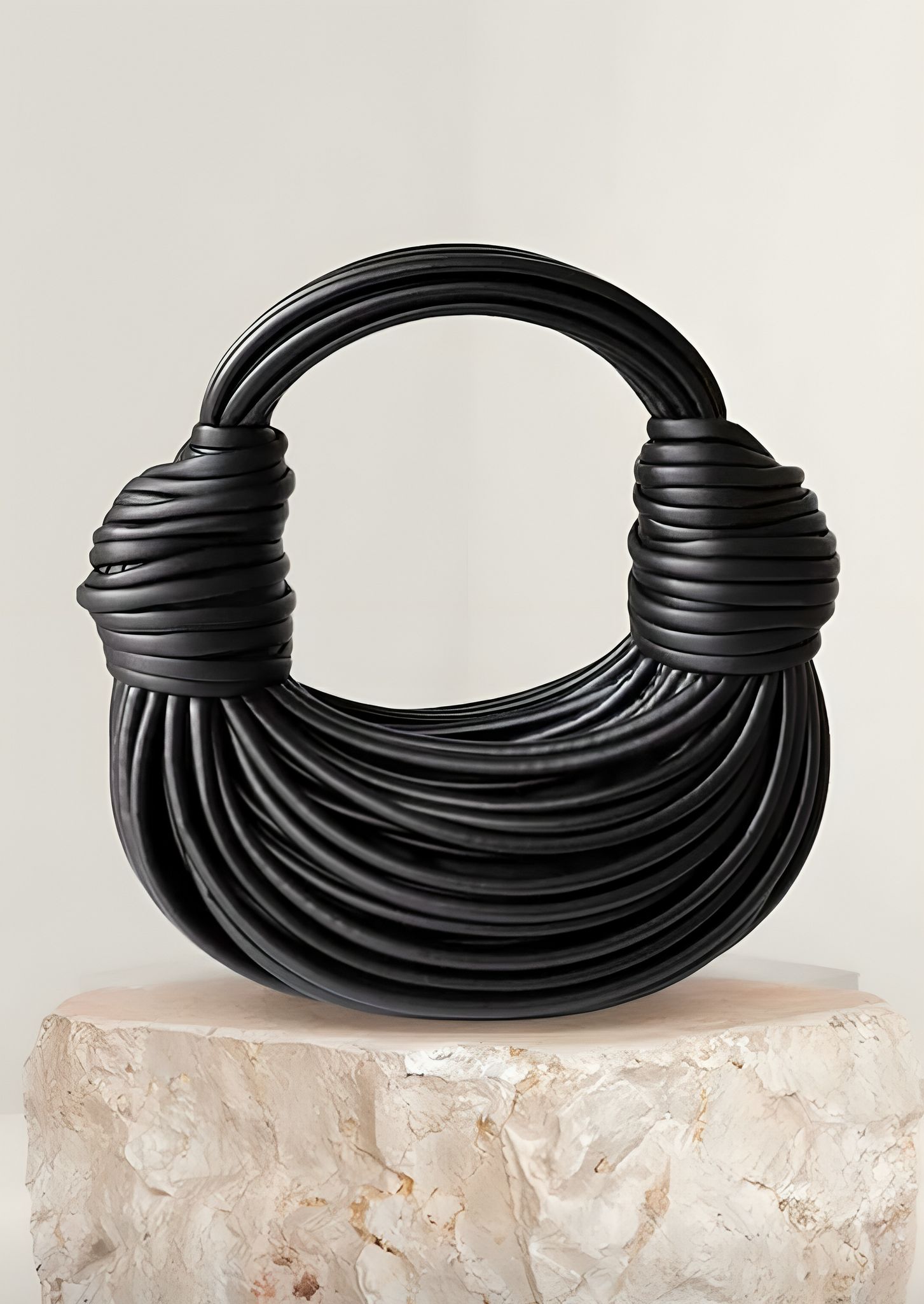 Ontdek de perfecte mix van design en functionaliteit met de zwarte Arela handtas. Met de hand vervaardigd uit cilindrische stroken echt leer, straalt deze tas pure elegantie en vakmanschap uit. De kenmerkende knoop details en het gevlochten ontwerp maken dit tot een echte blikvanger – ideaal om elke outfit direct te upgraden.
