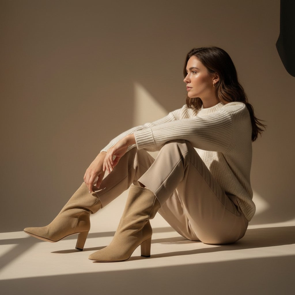 Hét statement voor vrouwen die stijl en zelfverzekerdheid willen uitstralen. Gemaakt van hoogwaardig, soepel suede stof en leer dat zich vormt naar jouw voet voor een perfecte pasvorm. Deze dameslaarzen combineren premium materialen met een tijdloos design dat moeiteloos aansluit bij zowel zakelijke als avondlooks.