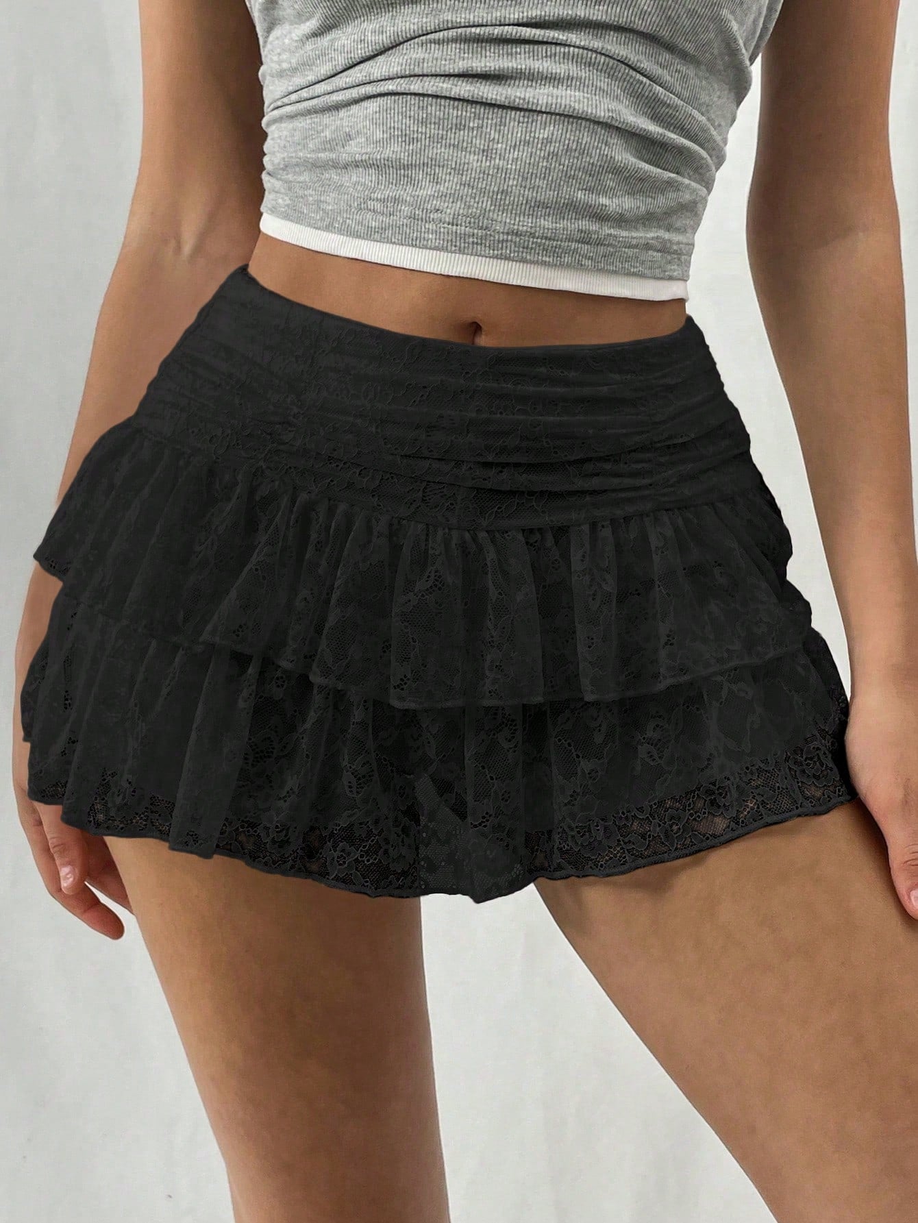 Deze elegante damesrok combineert vrouwelijke flair met ultiem draagcomfort. Gemaakt van fijne lagen kant en speelse ruches, straalt dit zomerrokje een romantische en trendy vibe uit. De brede, elastische tailleband zorgt voor een flatterende pasvorm, terwijl het ingebouwde shortje jou vrij laat bewegen – ideaal voor festivals, stranddagen of een casual date.